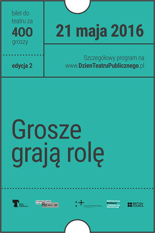 21 maja teatry publiczne w całej Polsce zagrają swoje spektakle w ramach akcji biletu za grosze. Jego cena (400 groszy) odwołuje się do rocznicy śmierci dramatopisarza wszechczasów – Williama Shakespeare'a. Bilety za 400 groszy będzie można kupić osobiście w kasach teatrów. Sprzedaż rozpocznie się 14 maja.