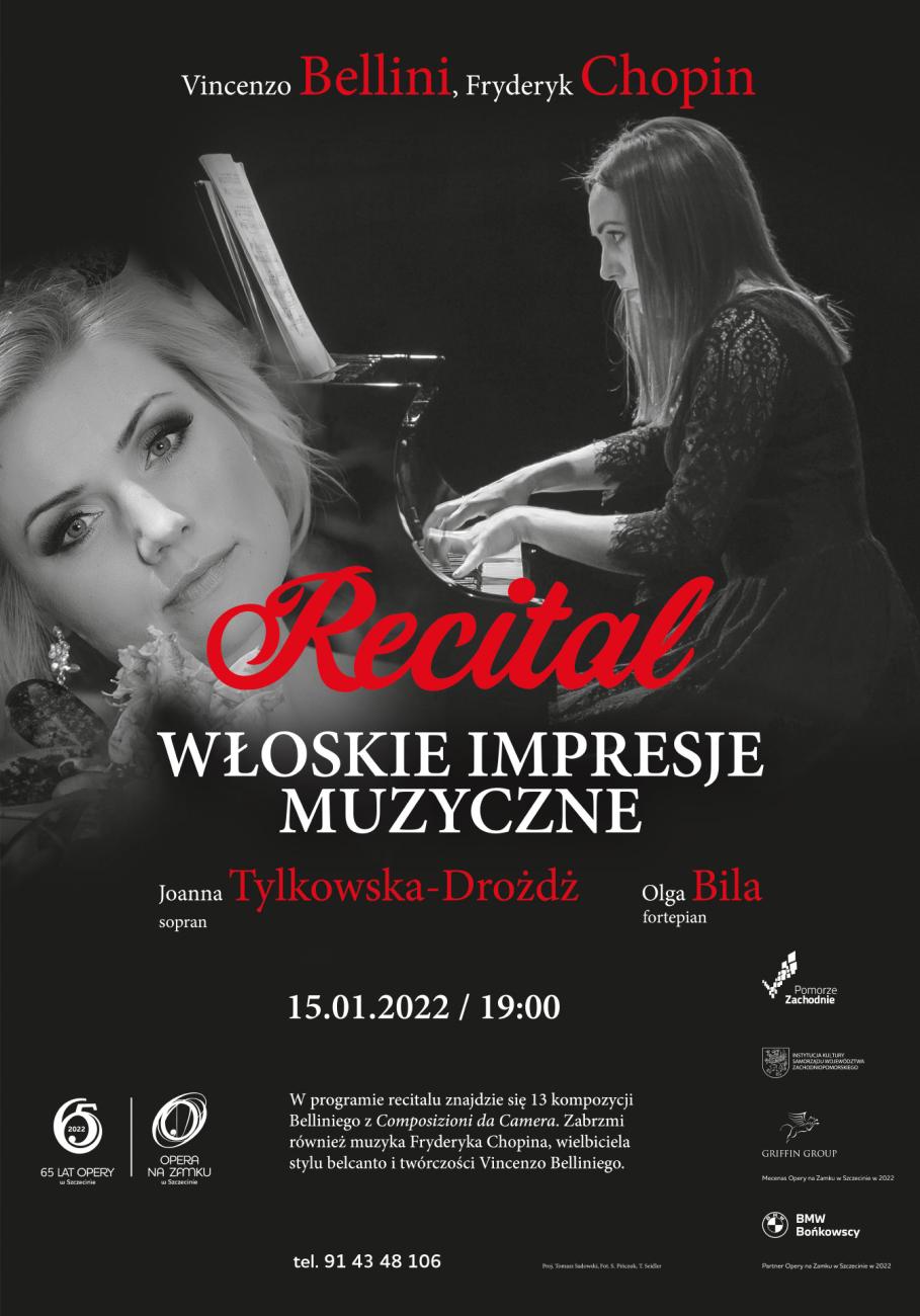 Podczas recitalu Joanna Tylkowska-Drożdż (sopran) i Olga Bila (fortepian) zaprezentują 13 kompozycji Belliniego z Composizioni da Camera. Zabrzmi również muzyka Fryderyka Chopina, wielbiciela stylu belcanto i twórczości Vincenzo Belliniego.